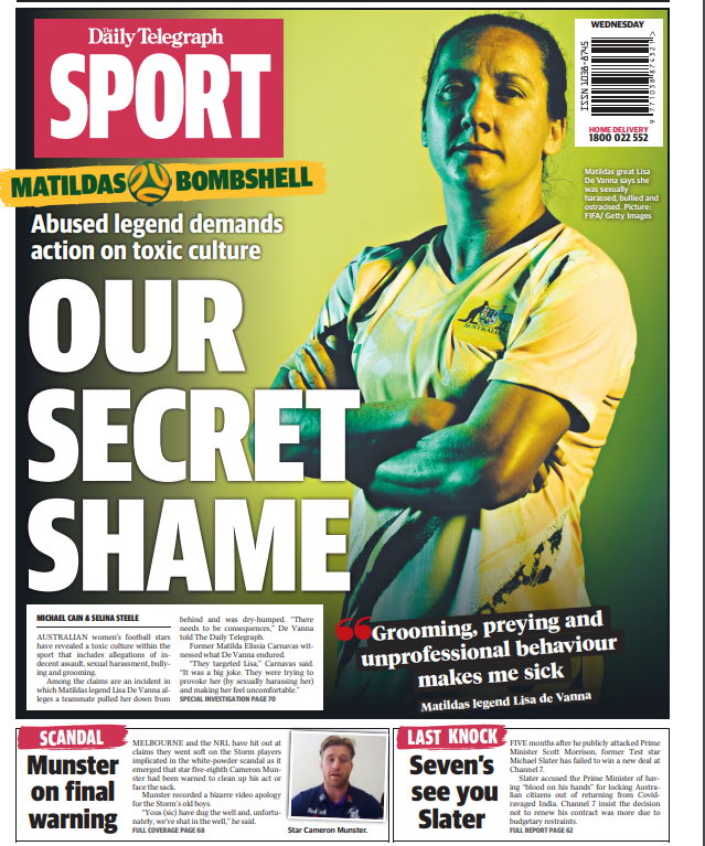 Speaking to The Daily Telegraph De Vanna alleged she experienced bullying and sexual harassment during a career which saw her represent Australia 150 times. In a recent article by The Daily Telegraph De Vanna and other female footballing representatives publicly disclose some of the disgusting attitudes and behaviour directed toward herself and others during the veterans 20-year career as a footballer. De Vanna alleged she was bullied sexually harassed and ostracised on a number of occasions during her stellar international career in an explosive interview with The Daily Telegraph.